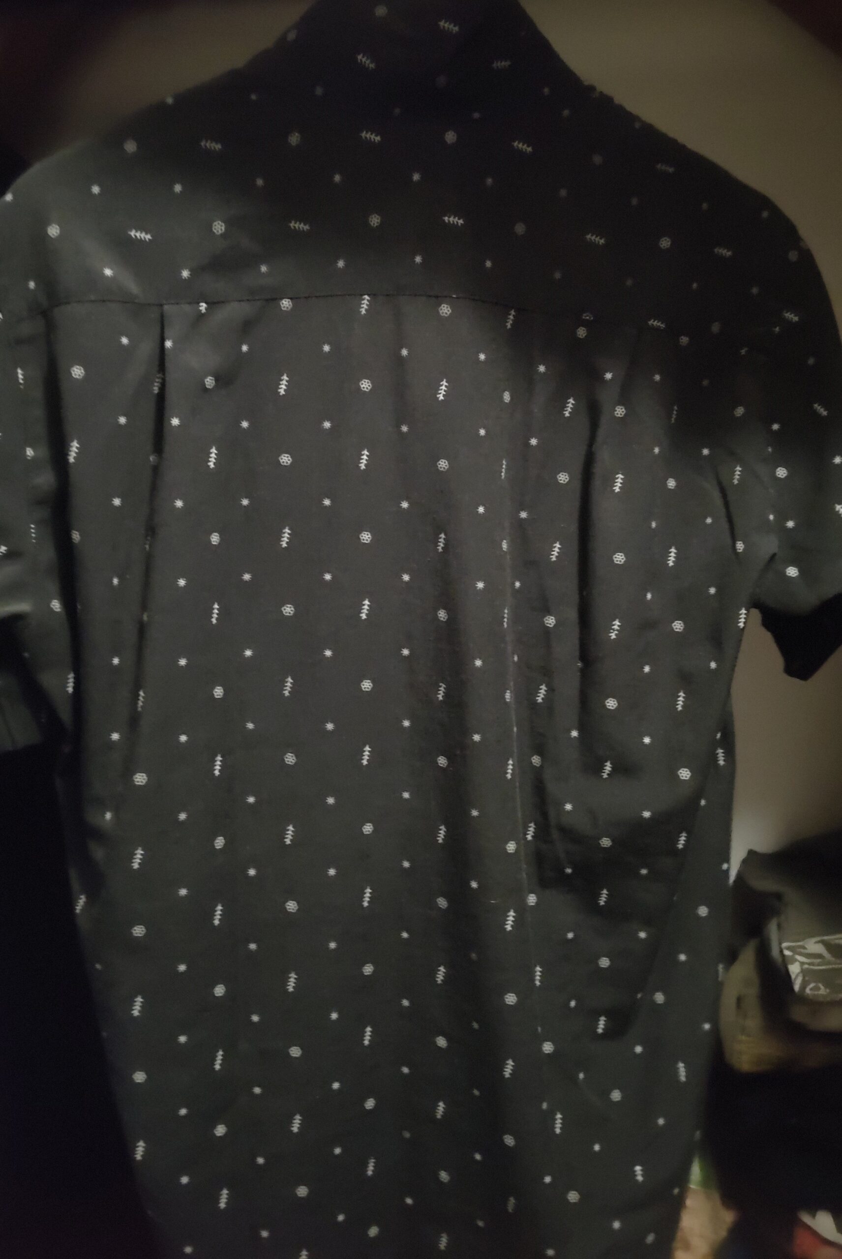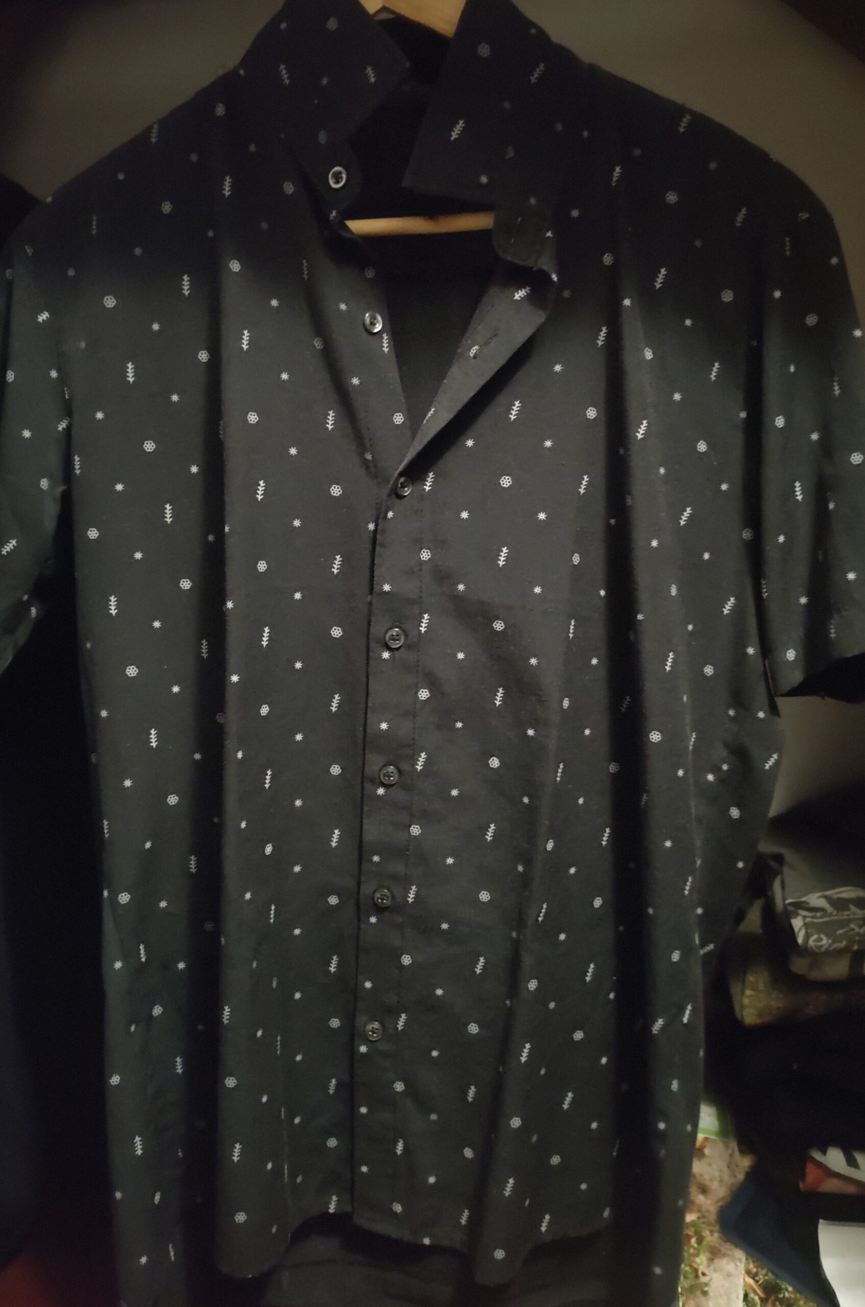 Camisa negra estampada para hombre de manga corta.