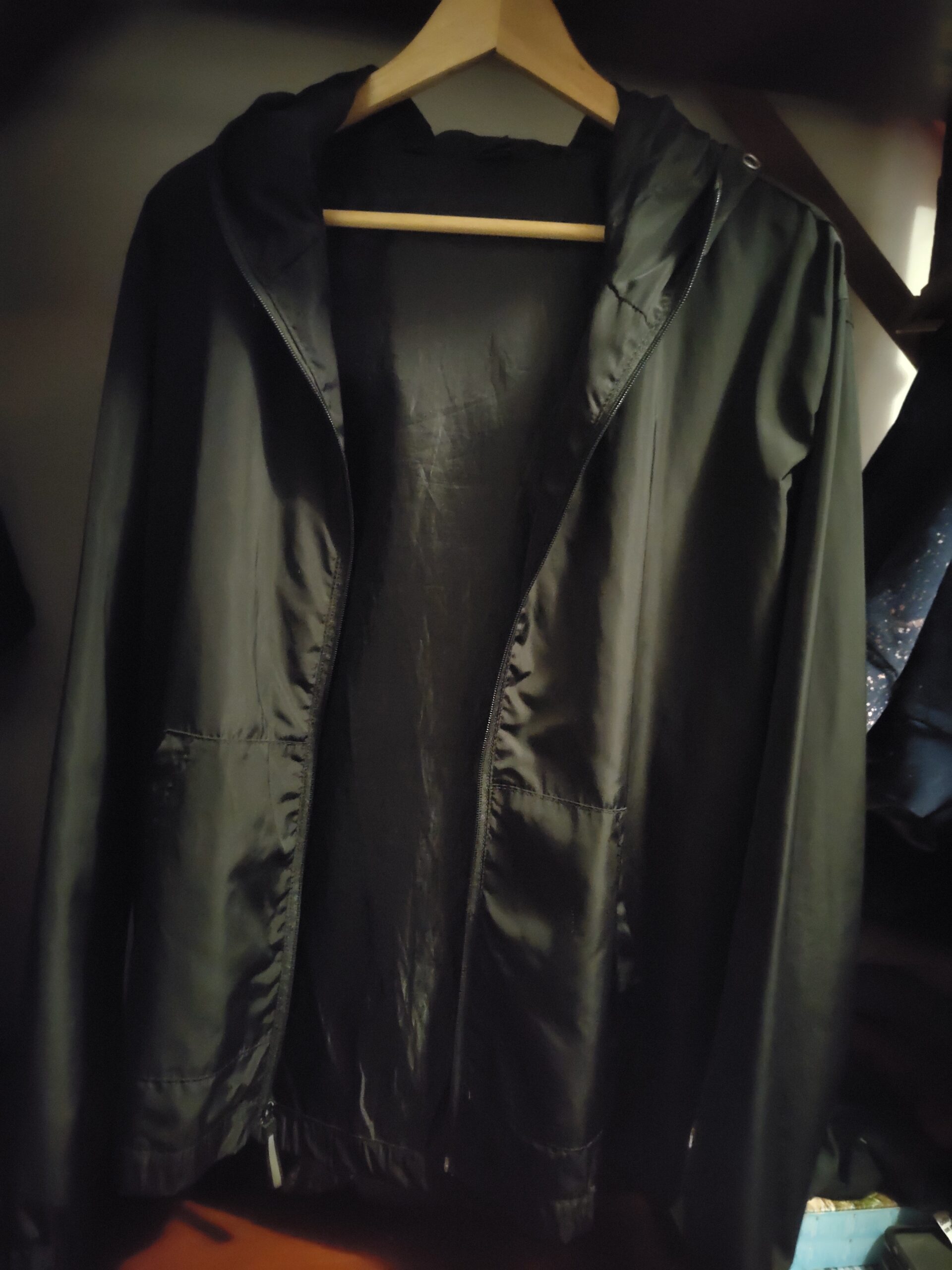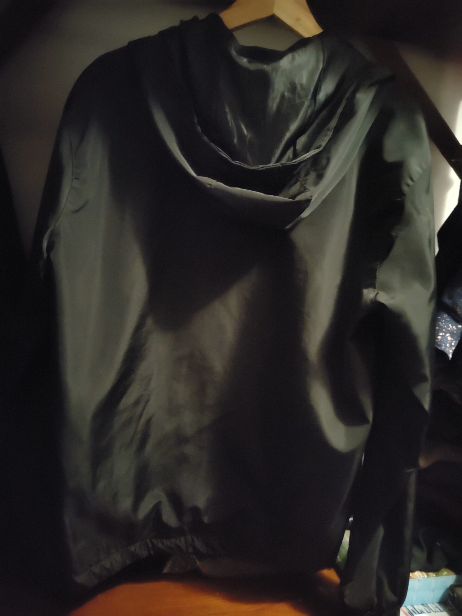 Campera negra con capucha para hombre, de diseño simple y versátil.