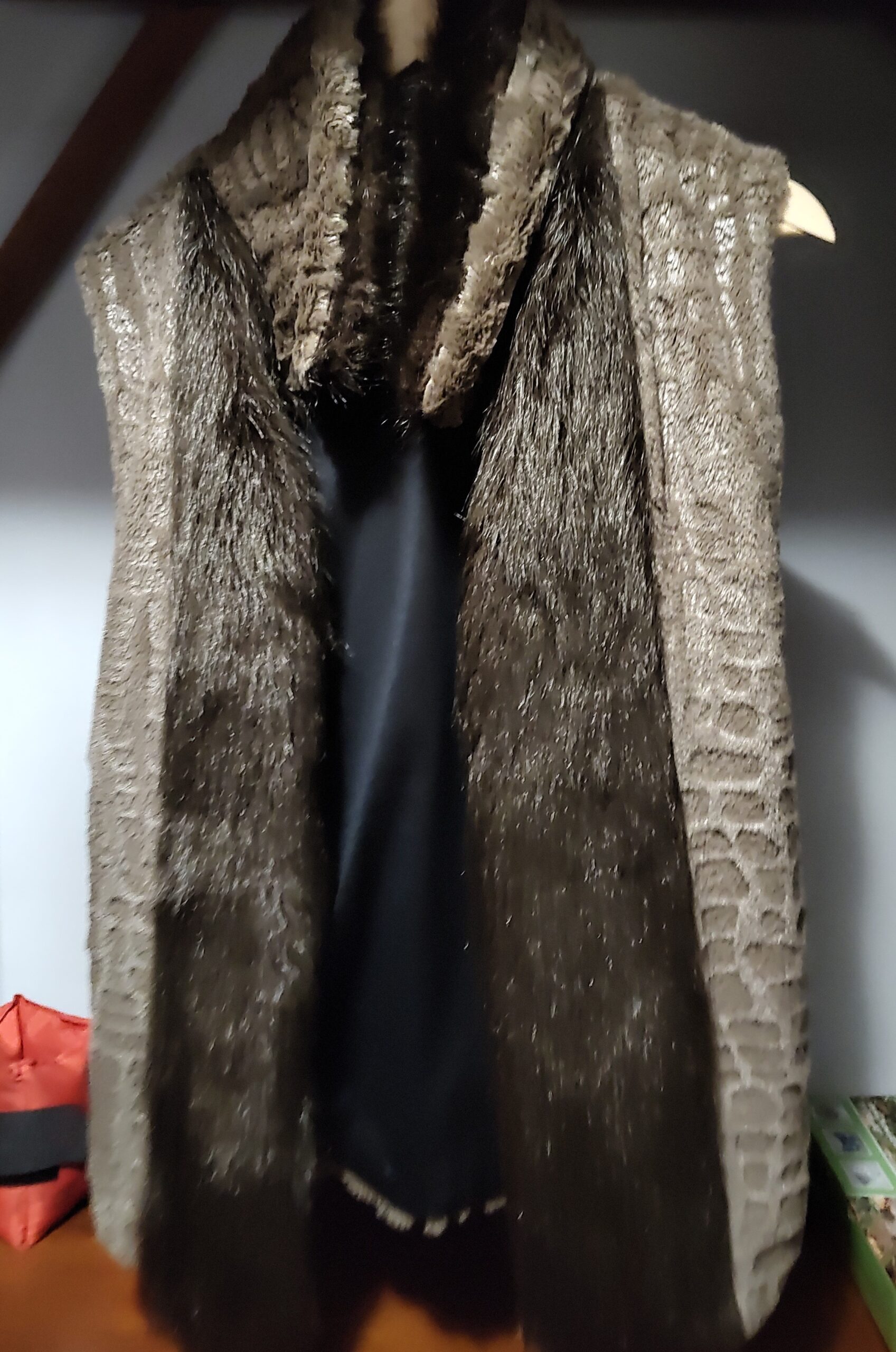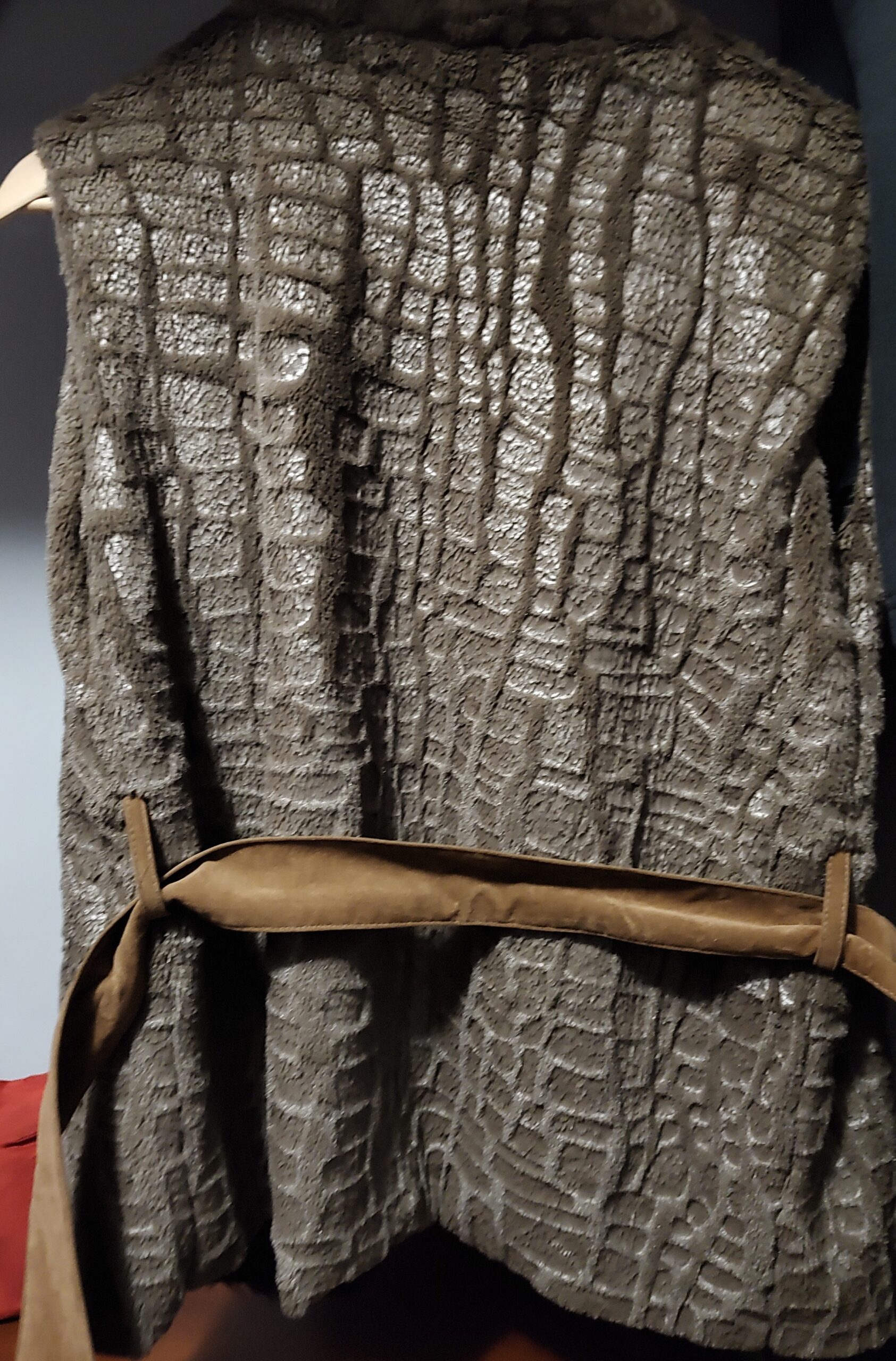 Chaleco de piel sintética marrón para mujer, con diseño elegante y abrigado.